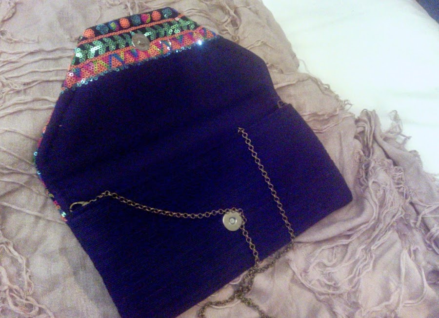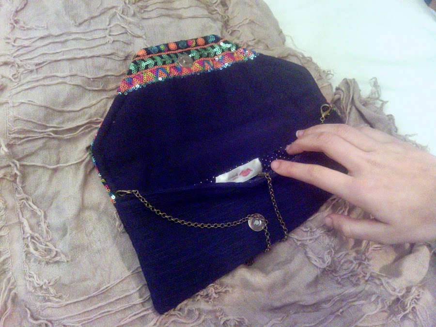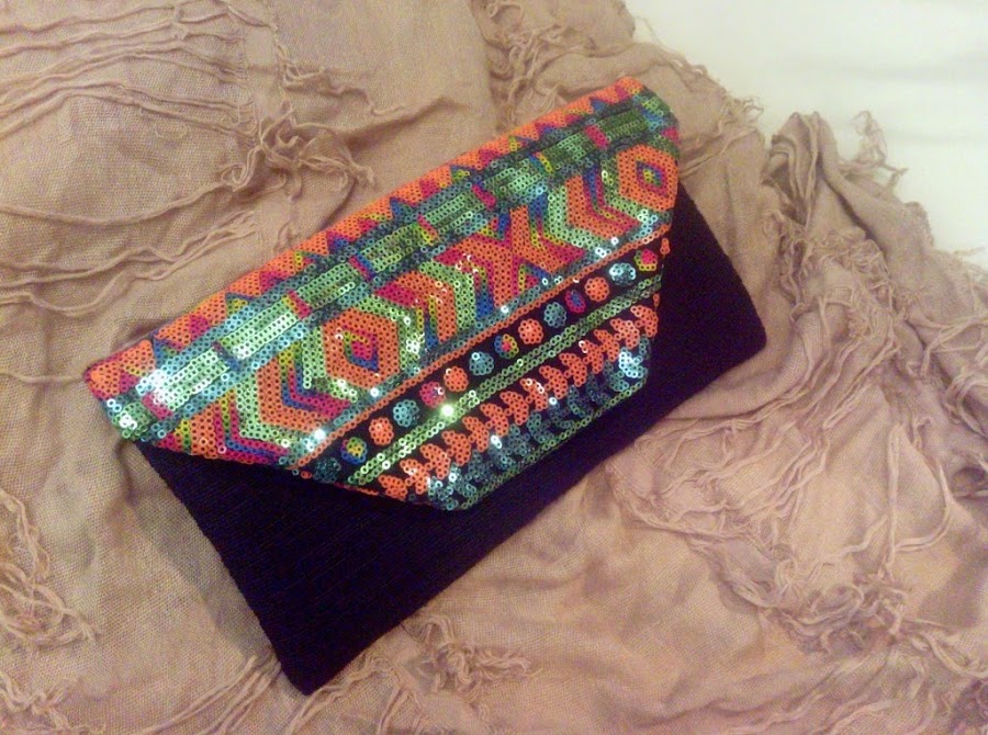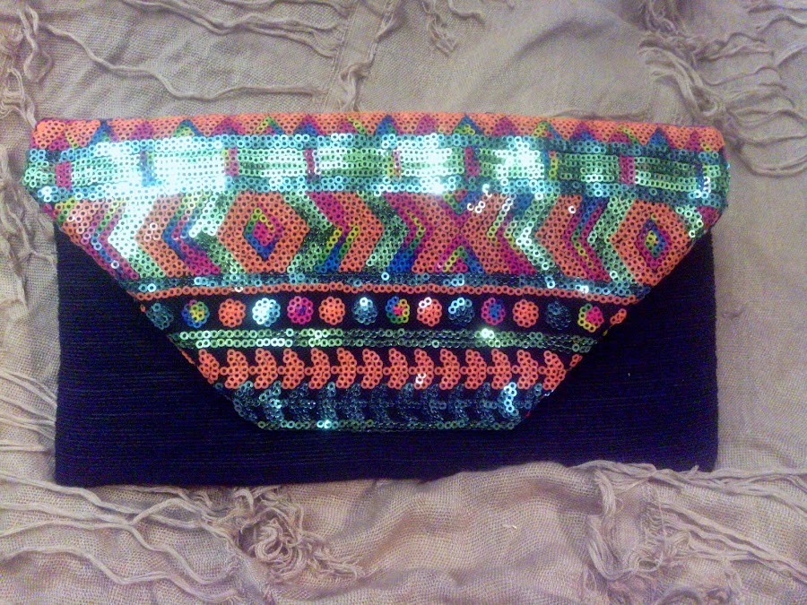 Este clutch con reflejos étnicos luce igual de bonito