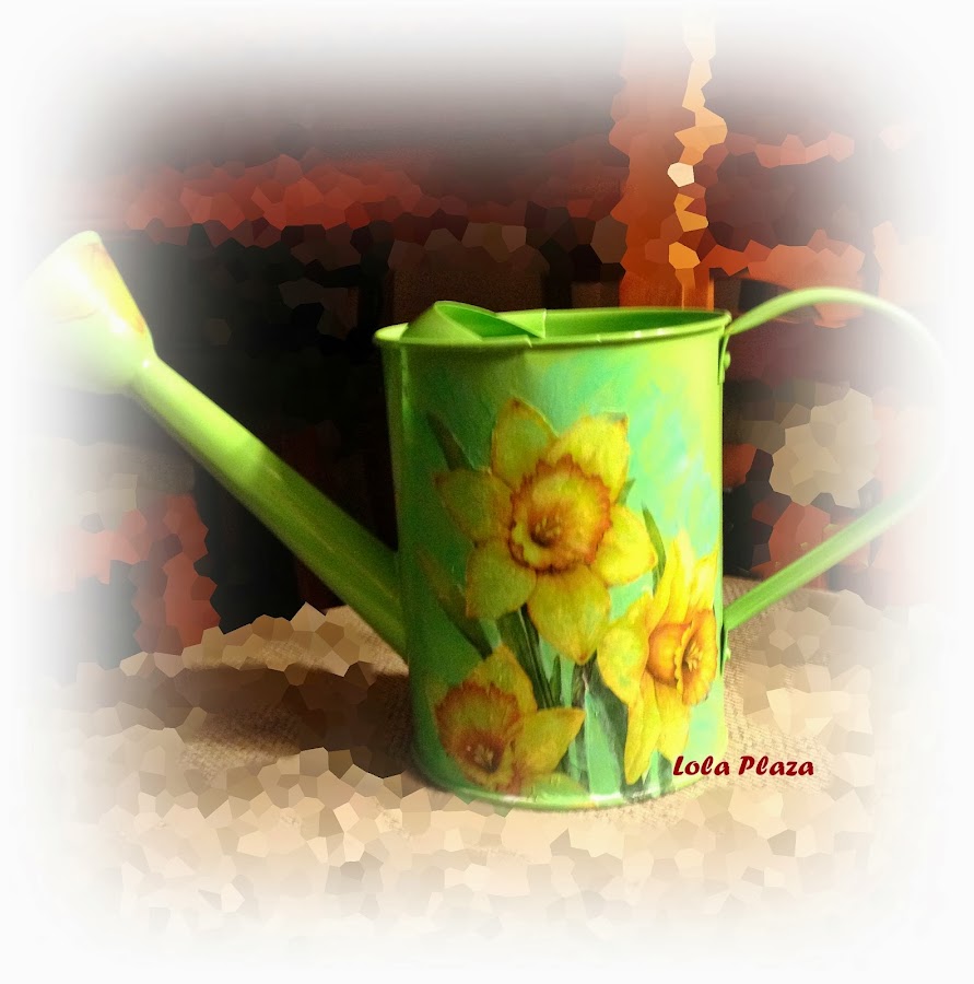 Hemos cambiado el aire de estas antiguas regaderas con decoupage. Matetriales: - Regaderas - Pintura blanca para la base de las regaderas - Servilletas de decoupage - Cola blanca La hemos pintado con pintura acrílica de color blanco y hemos aplicado el decoupage con diferentes motivos florales. y aquí os dejo el resultado final.