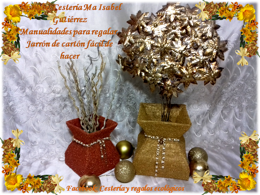 Para los jarrones necesitamos cartón semi-grueso, cinta de papel o cinta ce carrocero, papel y muy pocos materiales muy sencillos...