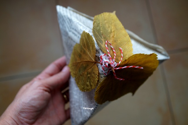 Justo ayer las saqué y con un poco de papel más recortes de hojas, hice una especie de pirámide-triángulo.