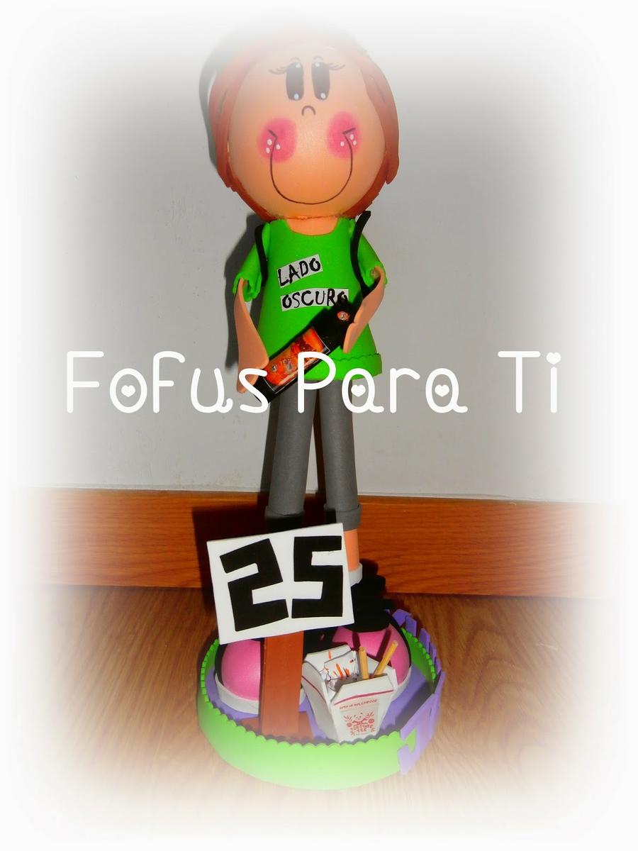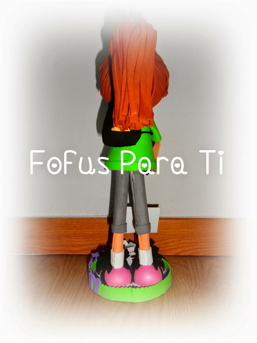 ¡Una Fofu Excursionista! Con todos sus detalles: mochila, mallas, deportivas fucsias, su nombre, edad, y otros hobbies y gustos personales.