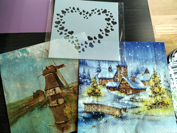 También estas dos servilletas preciosas, y esta plantilla de stencil de corazón o corazones (según se mire), super chulas... A la del paisaje nevado le doy salida estas Navidades seguro...