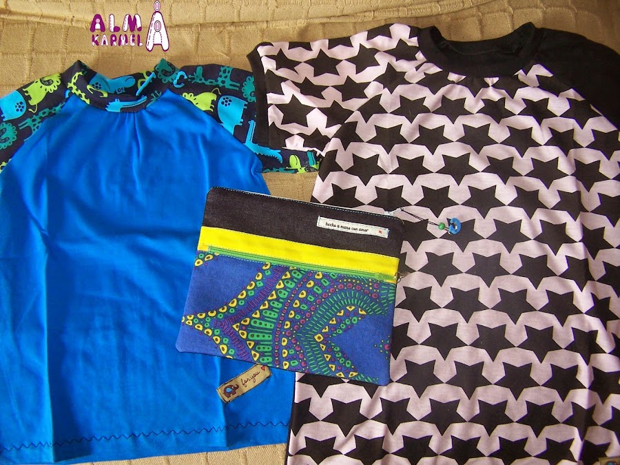 ¡¡¡¡Dos camisetas y una carterita!!!! desde luego no me esperaba tanto, regalitos para mis niños y para mí.