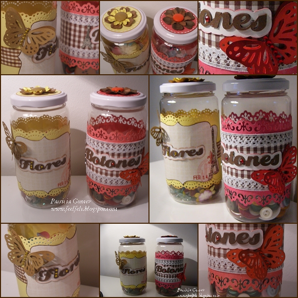 Como ya comenté el tiempo escasea, me hubiera gustado poder hacerle muchos adornos a mano, pero me fue imposible. Tan solo puedo decorarle dos botes, para flores y botones.