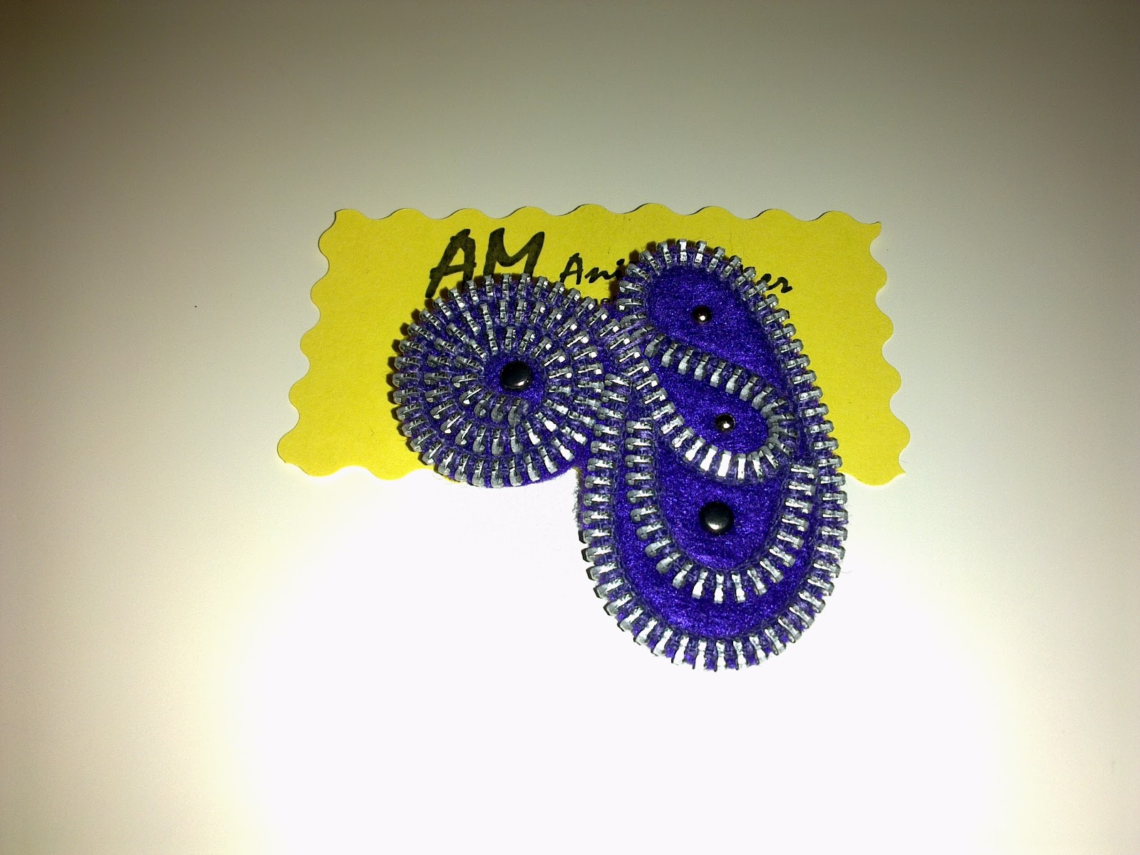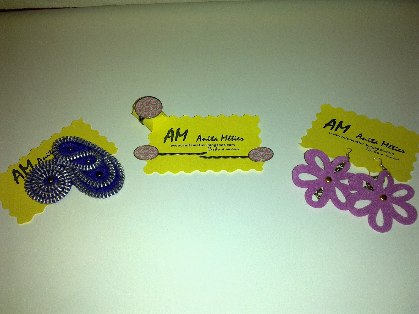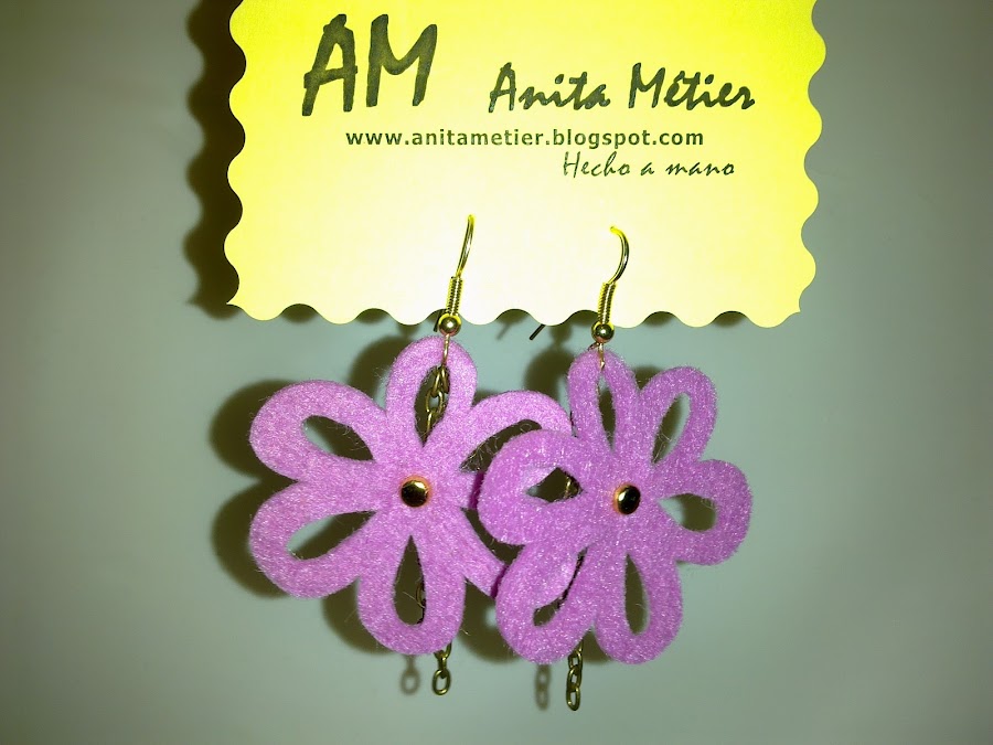 Unos pendientes con la flor de fieltro y detrás unas cadenitas color oro viejo.