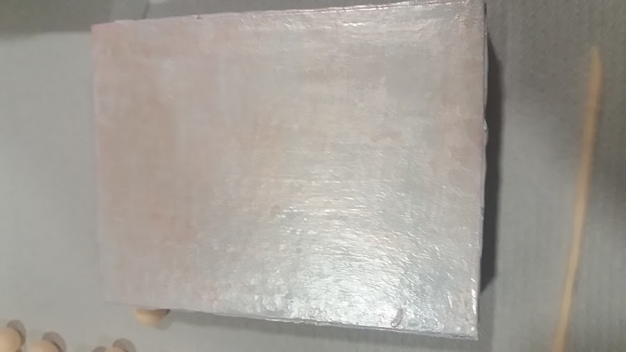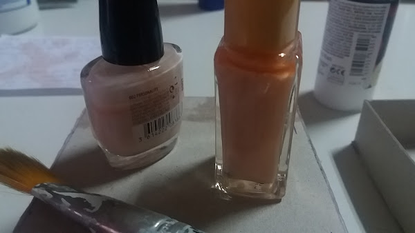 Mi intención era darle un acabado nacarado tanto a la cajita como al rosario. Pero en ese momento no disponía de esta pintura, mi musa que es mas rápida de pensamiento que yo dijo:, ve y coje tus lacas de uñas nacaradas.... La miré con sonrisa complicé. Y cayaditas fuimos a por ellas.