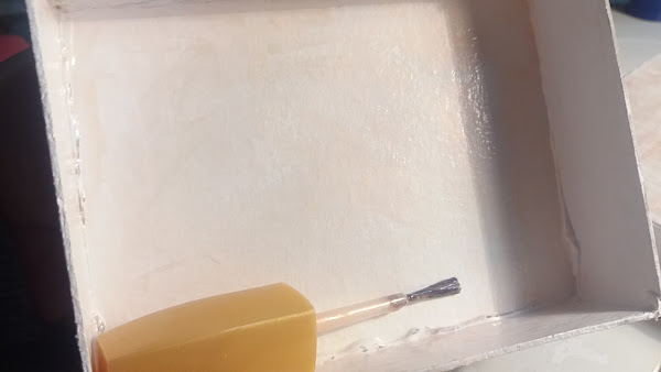 Primero la pinte con pintura acrílica de color blanco. Por dentro y por fuera.