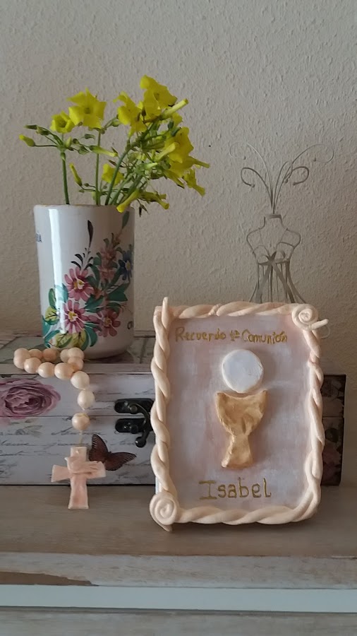 Hola amores !!!, hoy estoy muy contenta, aunque un poco liada, pues cuando vi el Reto, "Comuniones" de Facilísimo.com para este mes de Marzo, Me puse manos a la obra, pero enseguida me di cuenta que Bery , de la Revista Handmade Blogueros, nos propuso como Reto para este mes , el Tema "Bautismo, Primera Comunión, Confirmación", así que como me hace muchísima ilusión estrenarme en los dos Retos no he tenido mas remedio que para no cansaros hacerlo en un post, y así participar en Facilisimo.com y con Bery en Handmade Blogueros.