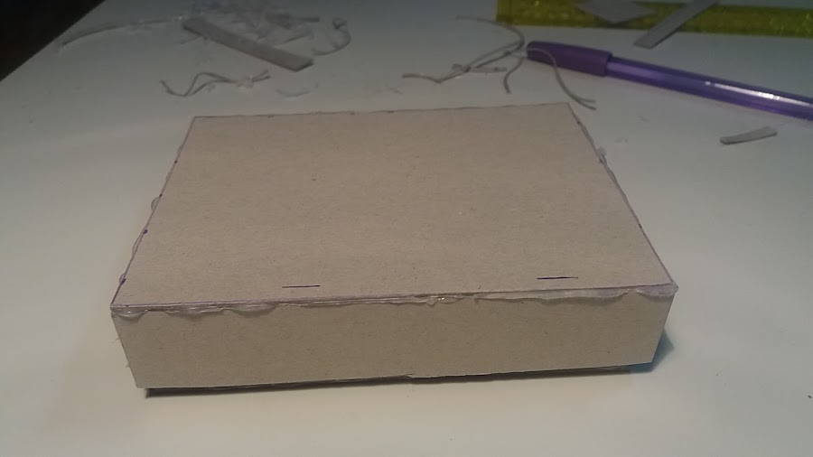 Utilicé el cartón de la caja de unas botas. Con una regla medí la tapa de abajo , de ancho le di 9 cm de largo 12 cm y los cuatro laterales 2.50 cm. de ancho.