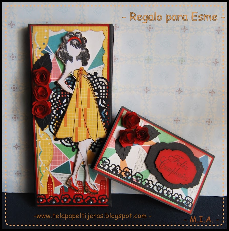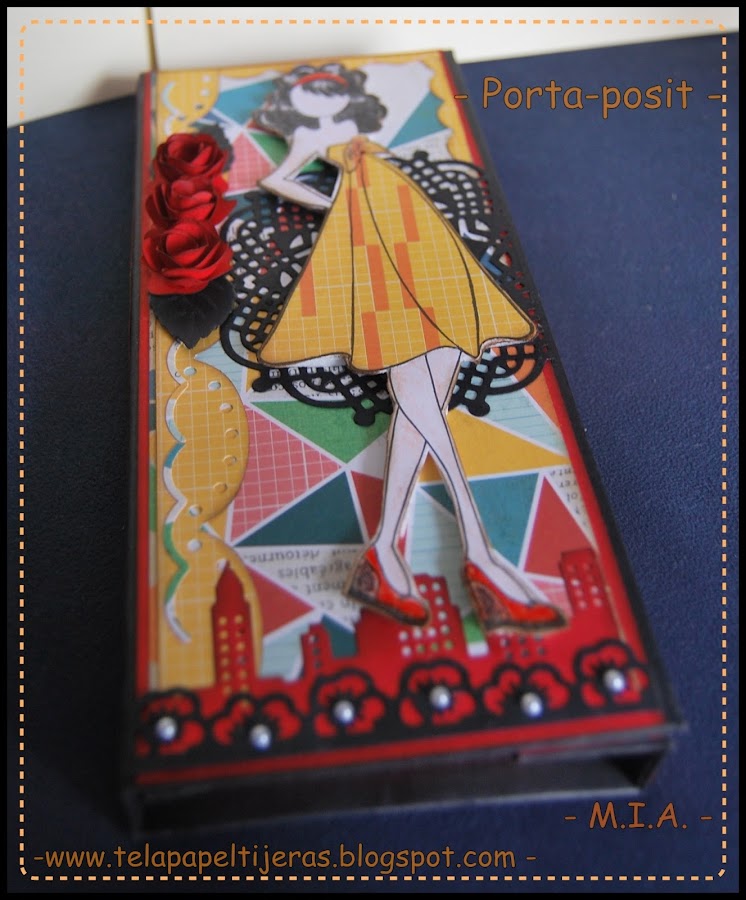 Este lo hice para mi amiga Esme, un porta-pósit con colores potentes que sé que le gustan mucho y una tarjetita a juego...