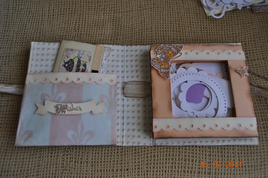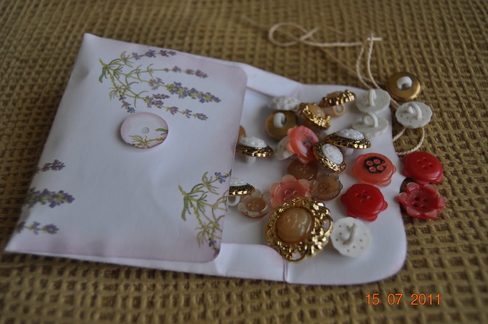 Aquí lo tenéis todo: un marca, una bolsita para los botones y un minialbum. Todo precioso.