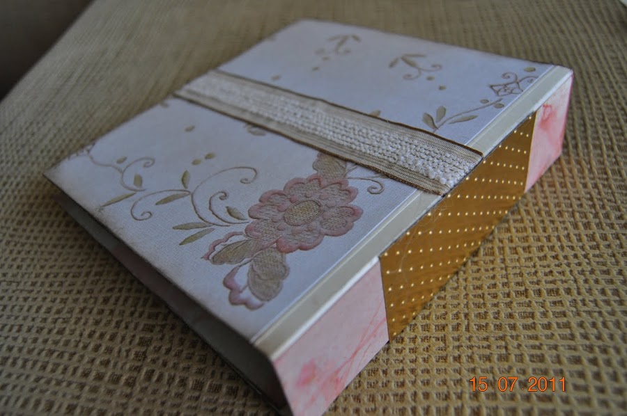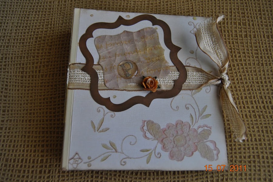 Es el cumpleaños de Almudena y como también es una entusiasta del scrap me decidí a hacerle un "conjunto scrapero", como ya le hemos bautizado... Elegí para esta ocasión la socorrida cartulina negra como base y para forrar los cartones de la libreta de notas. Esta vez, para adornar el papel base, montado sobre cartulina morada de tono oscuro, opté por el embosado con polvos dorados y pis ...