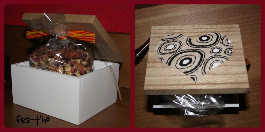 El pasado martes nuestra profe de yoga nos regaló esta cajita. Ha querido tener un detalle con nosotras para celebrar su jubilación. Las encargó a Gemma, la chica que lleva la tienda donde hacemos el yoga. Hace poco me enteré que es una persona muy creativa, inquieta e insomne, ya que me dijo que se ponía por las noches cuando no puede dormir.