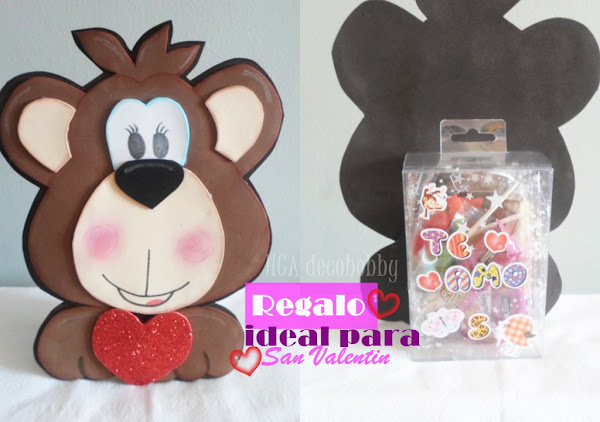 Una osito en goma eva o foami con sorpresa en el parte de atrás