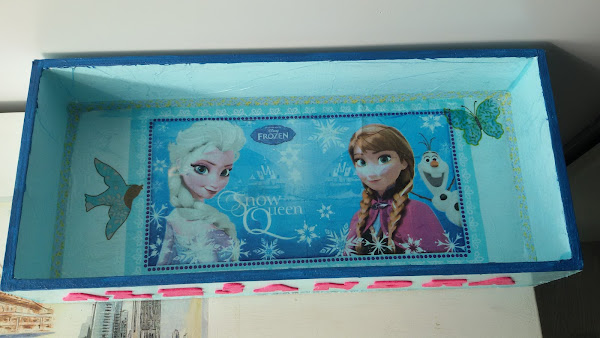 Una caja reciclada turronera con la imagen de las princesas que tan de moda estan