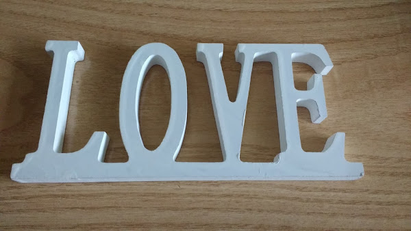 Después pegué las letras "LOVE" en el centro del tablón con la pistola de silicona y también pegué los extremos de las luces para que quedaran colgando por encima de las fotos.