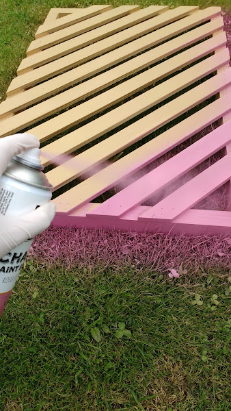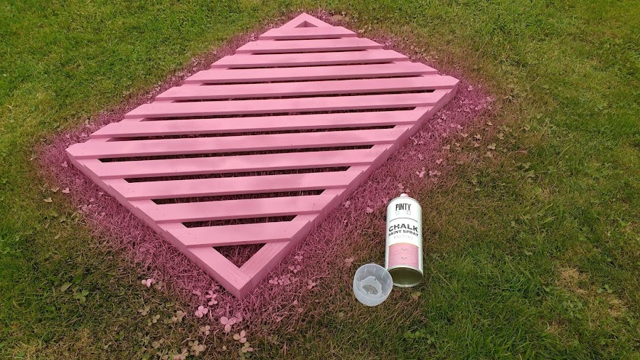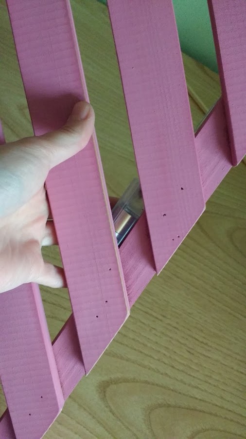 Después le dí una capa en spray Pinty Plus chalk paint en color dorado y despúes le volví a dar dos capas en color rosa pétalo. Tras secar lijé la madera para conseguir que quedara suave al tacto y no quedaran astillas. Posteriormente volví a limpiar con un trapo para eliminar el polvo acumulado.