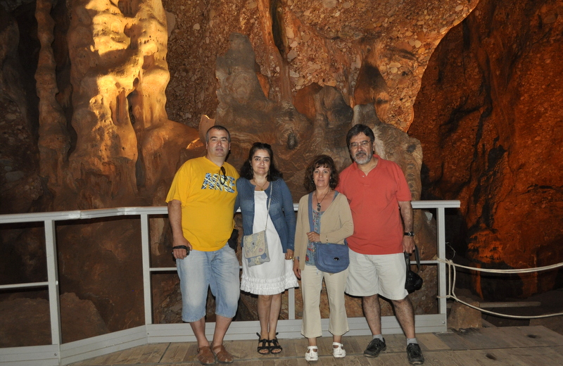 Y aquí los cuatro de lo más contentos dentro de una de las salas de la cueva.
