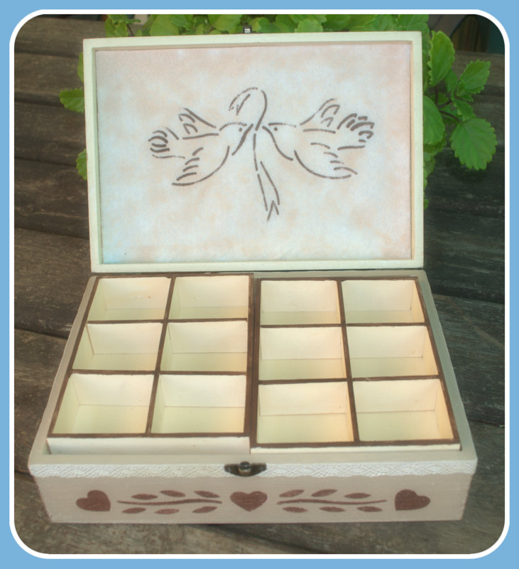 Le hice esta caja,por que al ver mis cajones del costurero,pensé que a ella también le vendría bien y sabéis por qué,mirarla por dentro y lo descubriréis.
