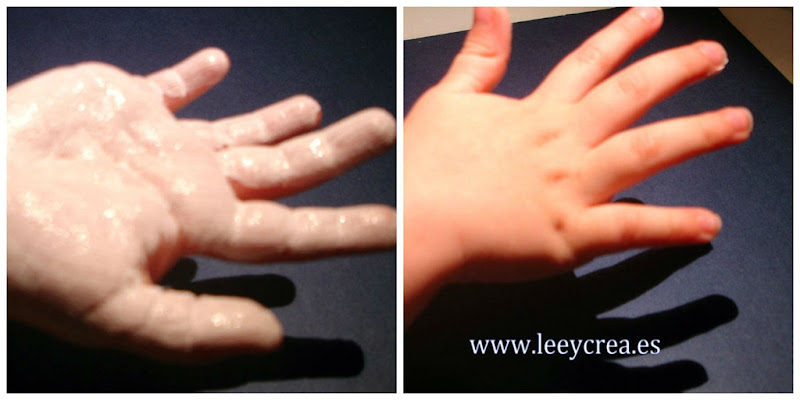 Comenzaremos pegando los palos a las letras de madera, para ello utilizaremos adhesivo doble cara o el pegamento, una vez hecho esto desmontamos el cuadro y con el punzón haremos los agujeros en la base para luego colocar los palos con las letras, como veis en la siguiente foto la última palabra está pegada. Terminamos de adornar el cuadro con los pompones y las flores de madera. A continuación solo falta colocar en el cuadro el motivo que cada uno desee, en nuestro caso utilizamos una cartulina y con pintura de dedos plasmamos la mano de la pequeña de la casa. También podéis colocar una foto del papá con el pequeñ@, unas flores secas? ¿Qué os parece? Como veis es un regalo sencillo de hacer. ¡Animaros! Un saludo. Crea.
