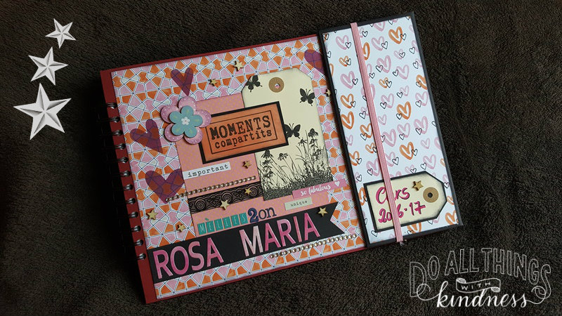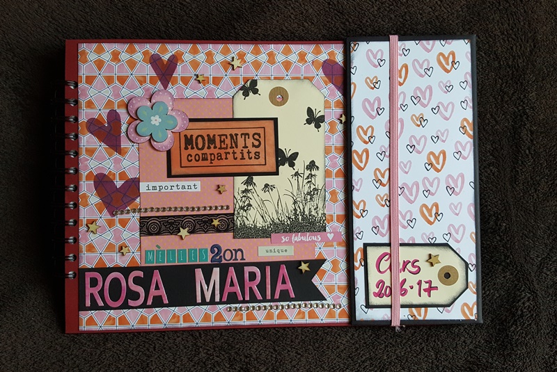La idea era que yo cogiera los 26 dibujos y los encuadernara especialmente para la profesora, Rosa Maria. Una portada de scrap completamente personalizada.