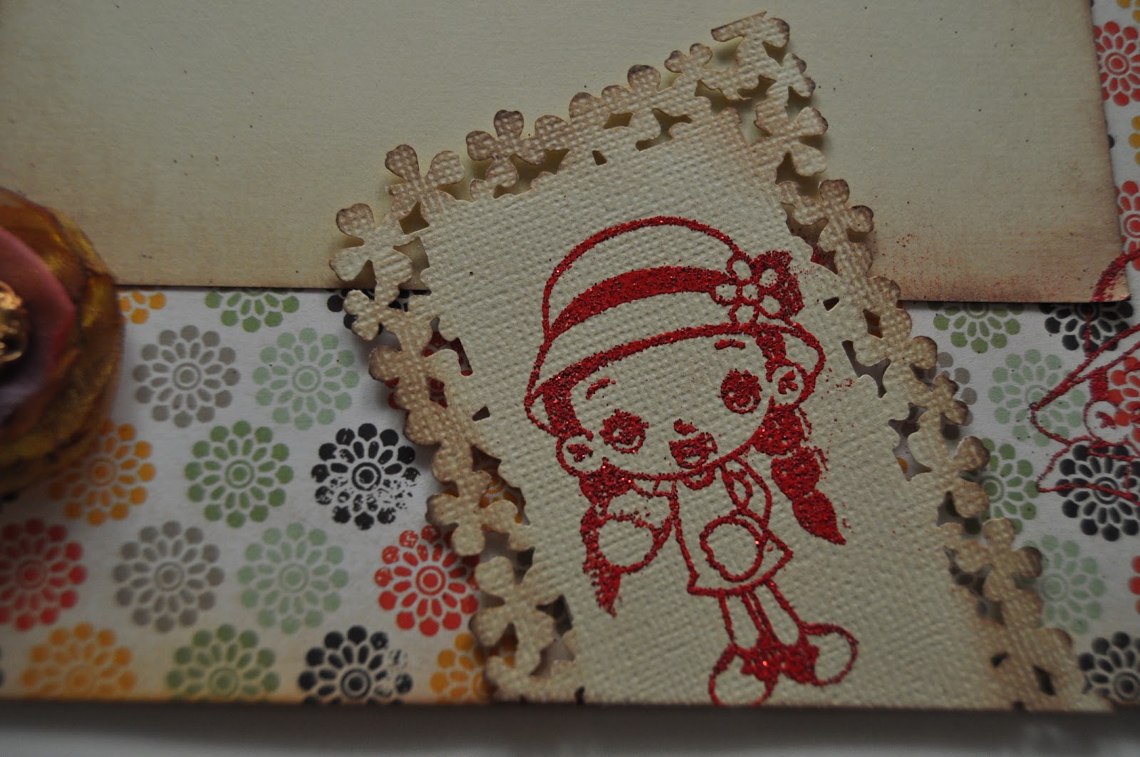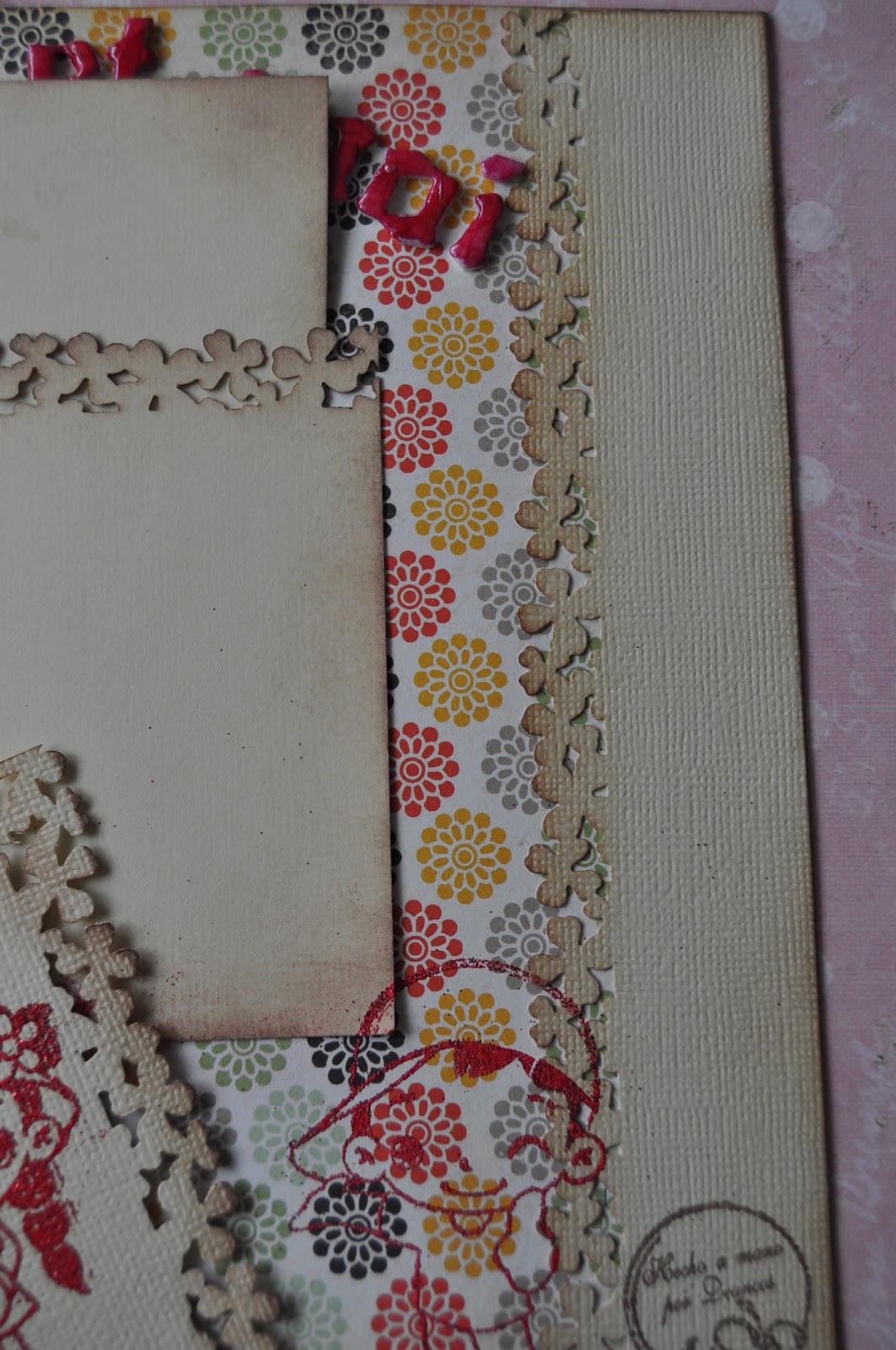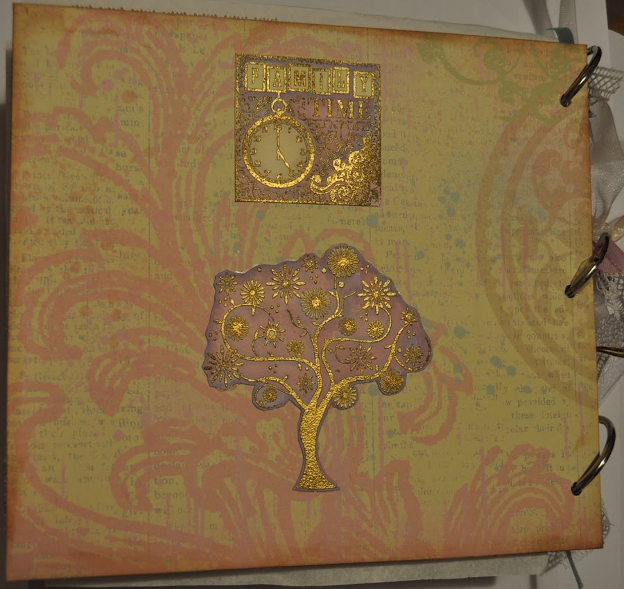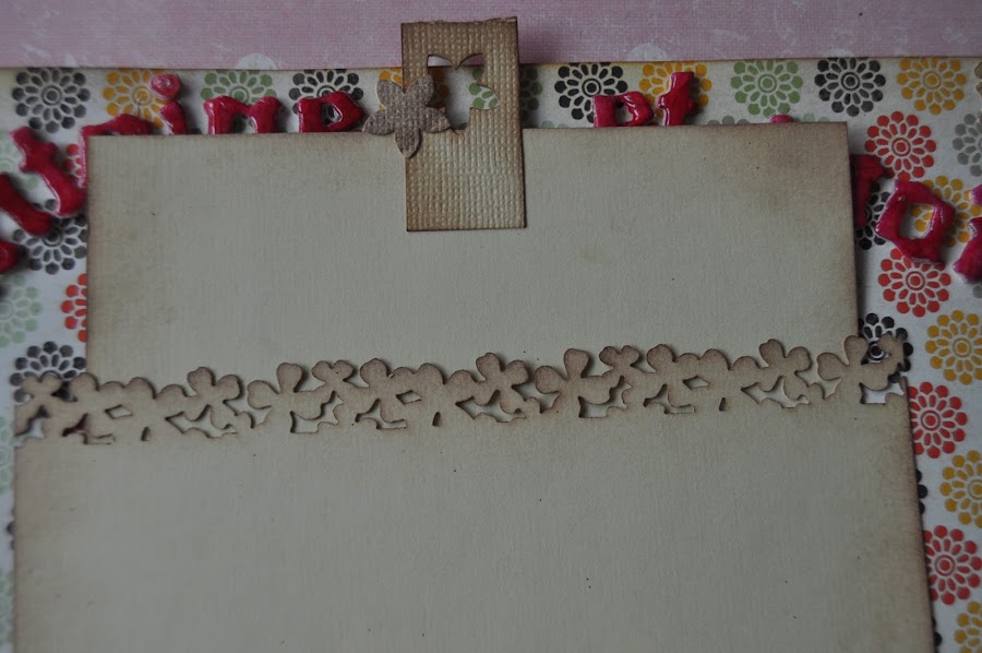 La parte de atrás del álbum está decorado con dos troqueles que me envió Luisa Fernanda para tal fin. Son preciosos. Ya os lo explicará ella en su blog.