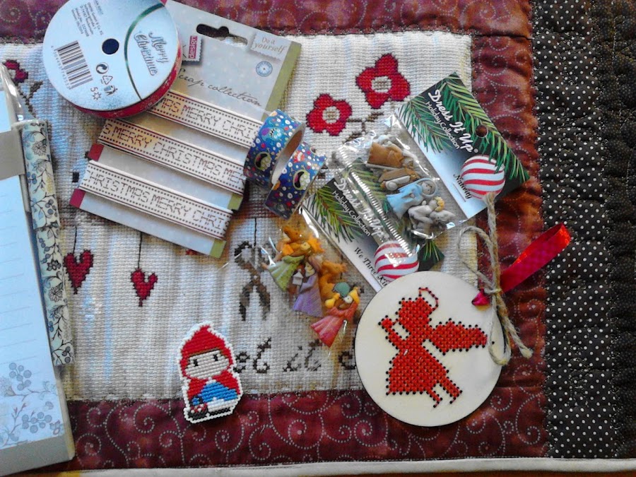 Estos precioso regalos me han llegado de parte de Eli en el juego del amigo invisible o angelita navideña como lo llamamos en el grupo de encuentros de PX. No tengo mucho que decir ya que a la vista esta la maravilla de este bordado y como esta montado, al enseñarlo a una amiga dijo : Son tus tijeras!!!! Imaginaros si dio en el clavo....