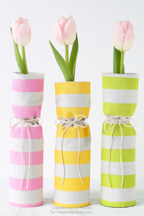 A flower vase made from bottles. This cute option is from I heart nap time.