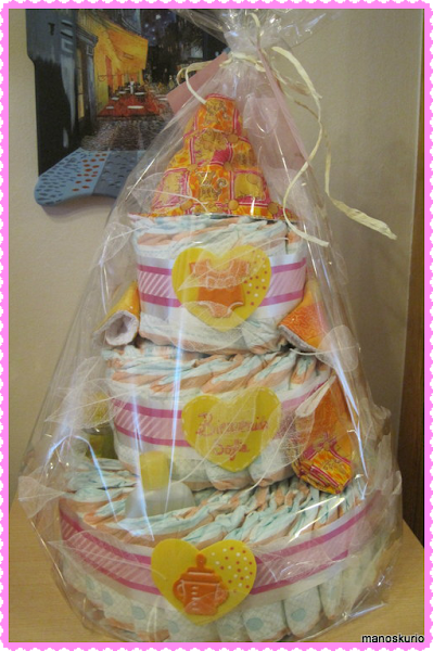 Hilda junto con varias amigas más, participaron en la fiesta "baby-shower", este tipo de fiestas se realizan para celebrar el reciente o futuro nacimiento de un bebe, y me encargaron una tarta de pañales para llevarla como regalo.