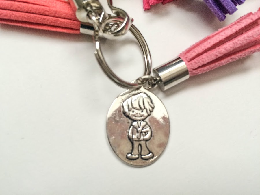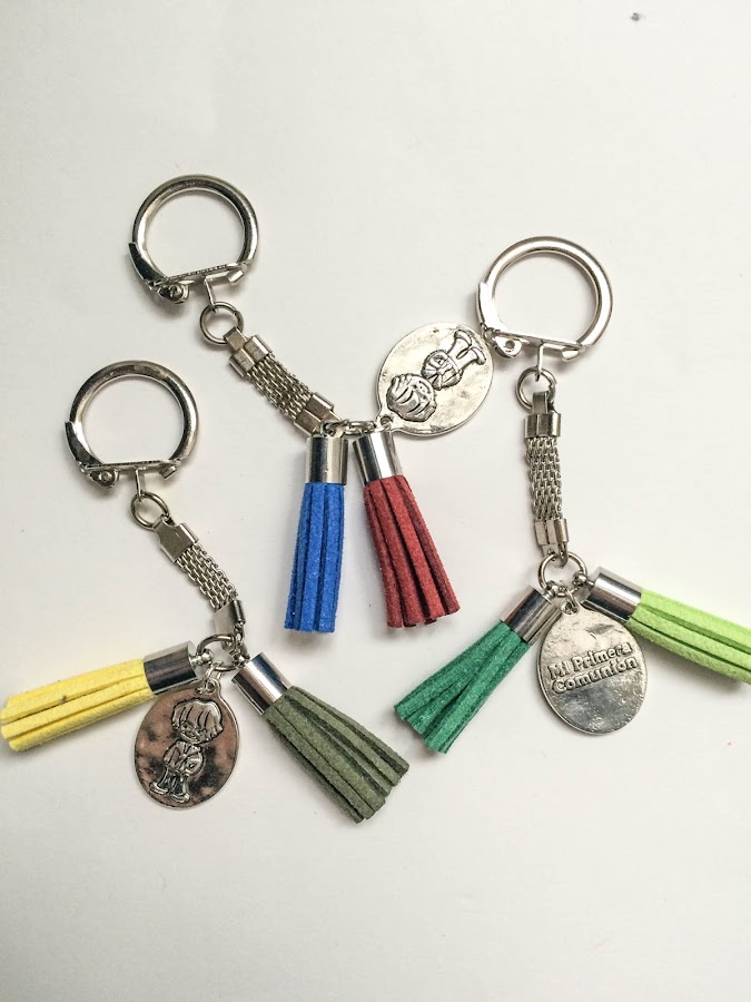 Así que finalmente decidí hacer llaveros. Para ello compré dos tipos: el que veis en la parte izquierda para los chicos y el de la derecha para las chicas.