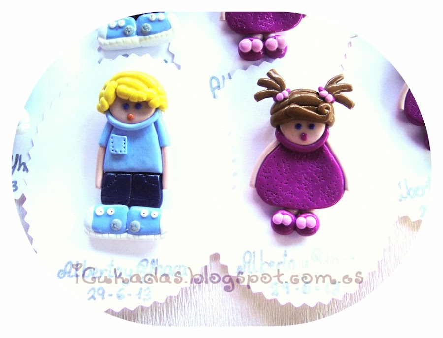 Esta vez me encontré con unos novios muy majos, que son papás de dos niños monísimos, y querían que sus hijos fueran protagonistas de su feliz día, así que me puse manos a la obra con la novia a ver que querían exactamente, y en resumen querían broches personalizados de sus hijos, con color de pelo, ojos, rizos, coletas, color de ropa y todos los detalles bien pensados, a mi estilo eso si, y que fueran preparados en una cesta para que la novia los repartiera entre las feminas invitadas al evento, y el resultado fue este, 50 niños y 50 niñas listos para regalar.