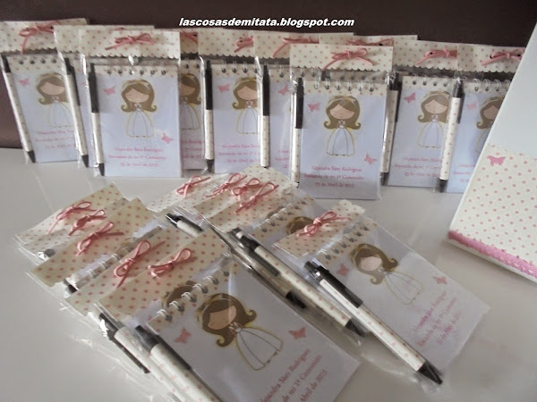 Para Alejandra (Algeciras), que hará su Primera Comunión el próximo 25 de Abril y quien repartirá estas libretitas tan cucas a sus invitados. Todas iguales en tonos rosas con topitos y bolígrafo a juego. Que pases un día estupendo en familia!!!