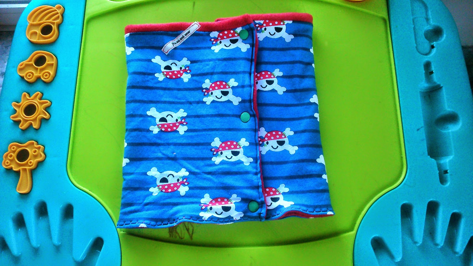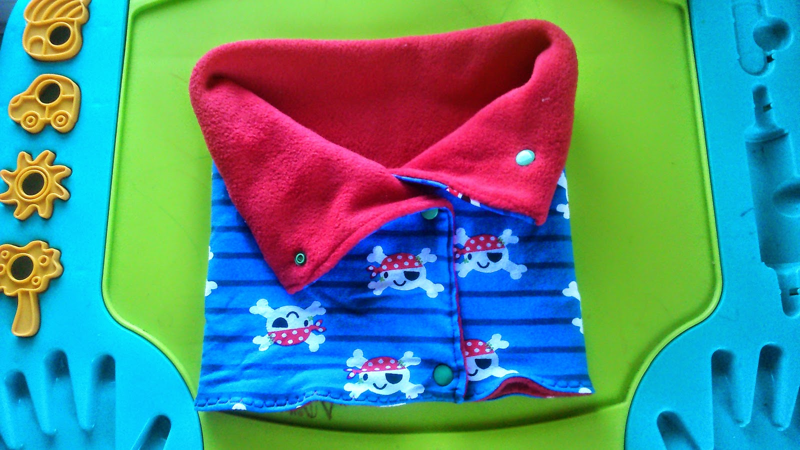 Tela de camiseta pirata y forro polar calentito por dentro.