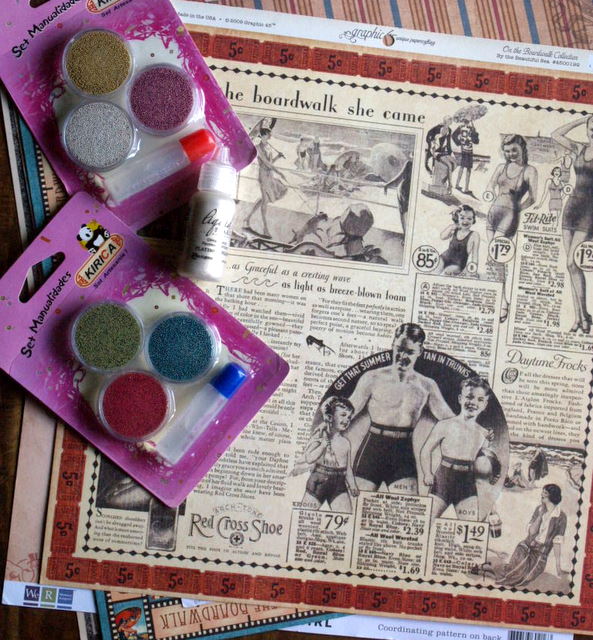 también material que me encanta: papeles, liquid pearls y esas bolitas chiquitinas que nunca sé como se llaman... jeje