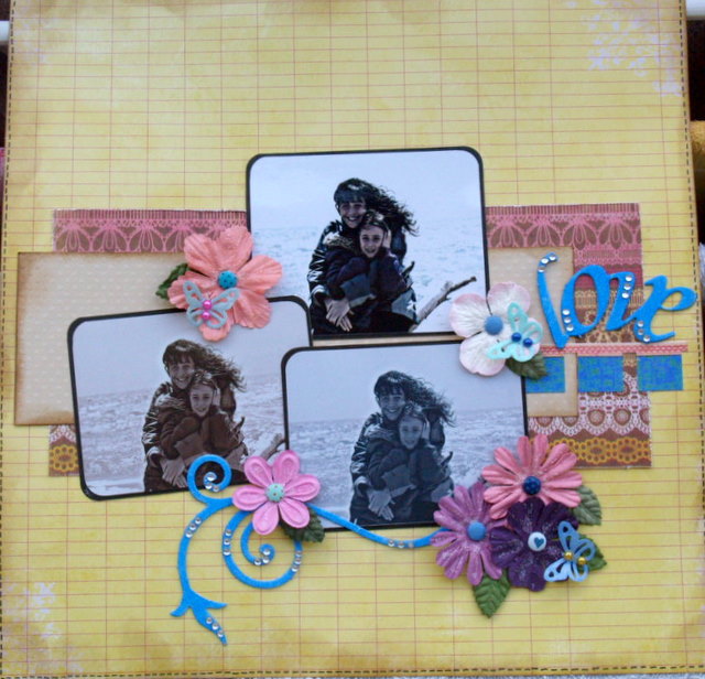 Esther me mandó una página que enamora....con fotos mías y de mi hija, la misma en tres revelados distintos, es muy bonita, llenita de detallitos que la hacen un tesoro!!!!