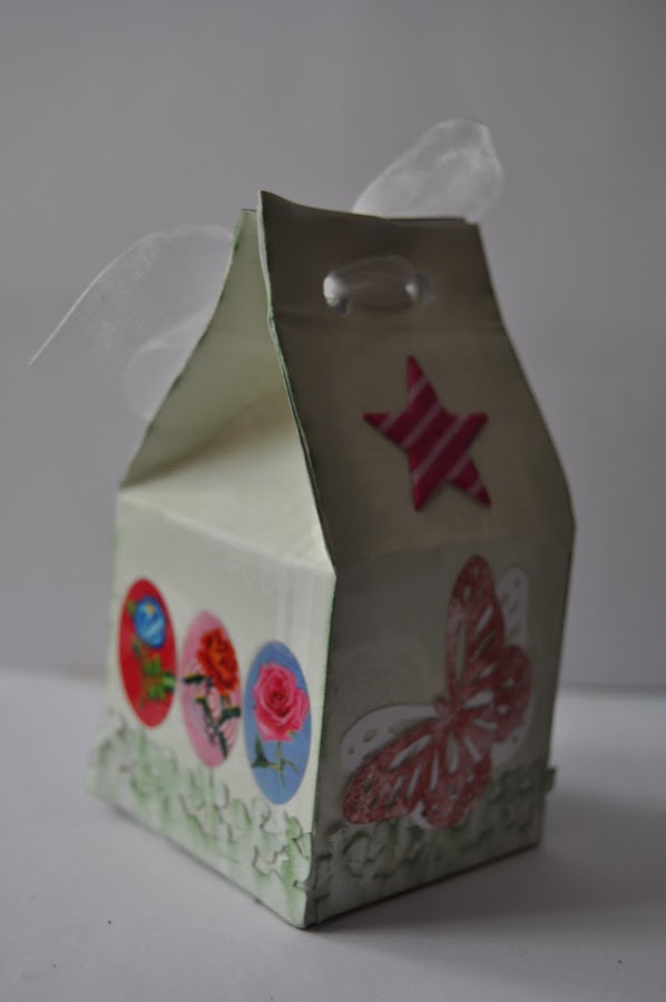 Mi hermana me entregó para mi cumple una valisette (tenía unas ganas enormes de tener una y no soy fina con la costura), una pulsera preciosa que metió en un minibrick-cajita con el que participó en el post de 1,2,3 Scrap.