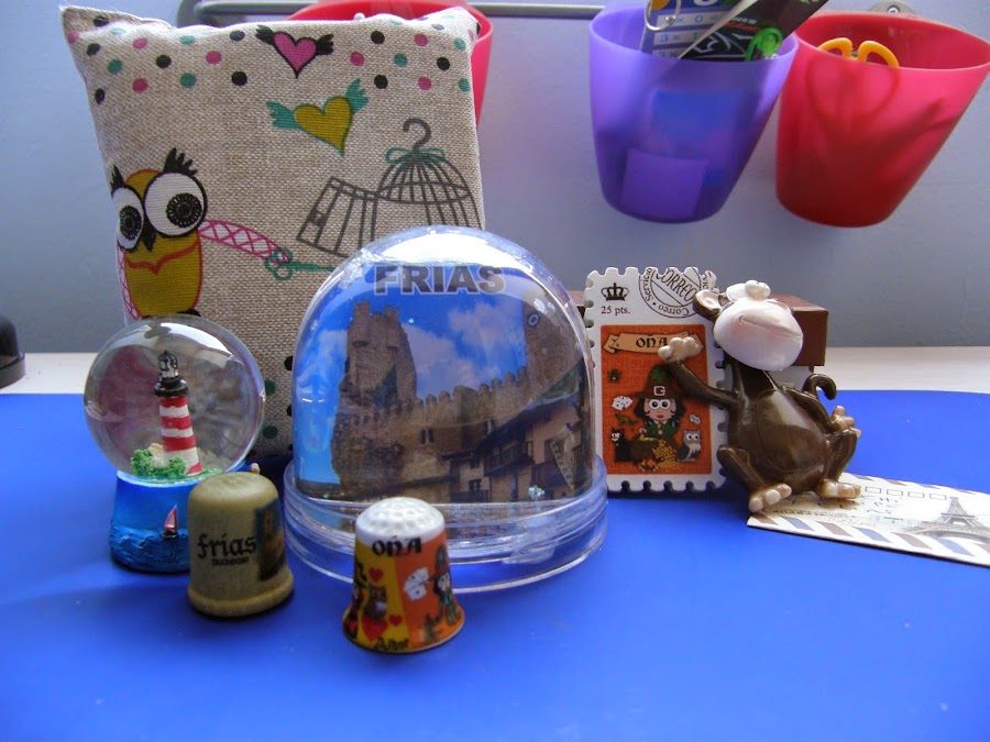 Estos bonitos regalos para toda la familia me los envió mi amiga del grupo encuentros Isabel Rejón, se acordó de las bolitas de cristal para Elias , de los imanes para Felipe y dedales y cojín para mi!!!!
