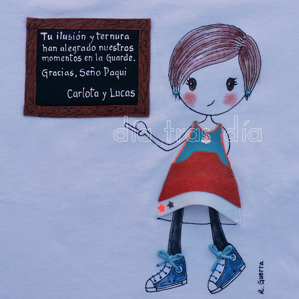 Y para la seño Paqui, Estrella eligió una camiseta también personalizada y con el mismo uniforme: