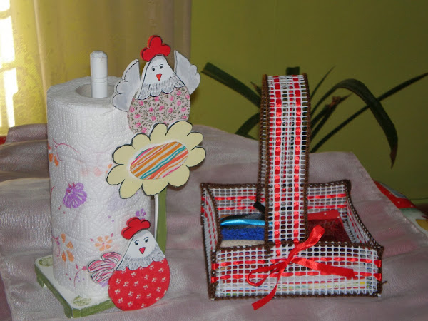 A mi primera as que fue Marisa del foro las chicas del tallercito le realice un simpático portarrollos para la cocina , las gallinitas las corte yo con mi sierra de vaivén .