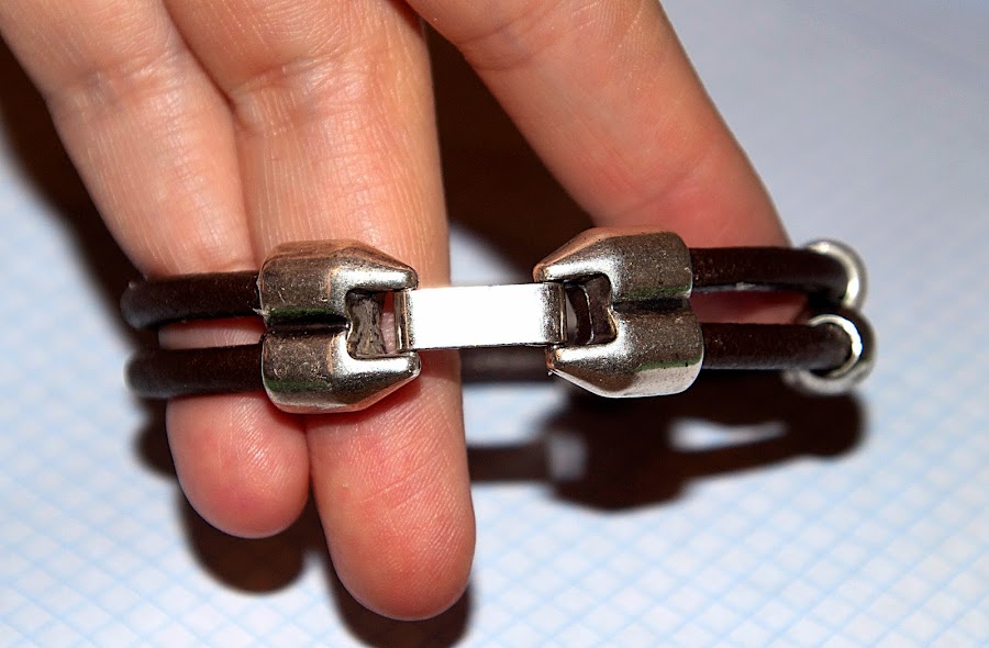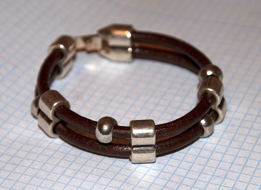 Lo siguiente fue para mi amorcito, esta pulsera de cuero con cuentas y cierre metalico,