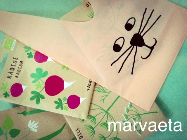 Estas son las semillas (2 por 1 euro). Había de cuatro tipos y fueron en cada conejito al azar.¿que hay más primaveral que plantar? Además de una experiencia para los niños plantar sus propias semillas y esperar a ver como crecen. Además al ser distintas pueden contarse después como son las suyas o incluso llevarlas a clase para hacer un mini huerto.