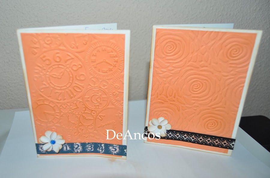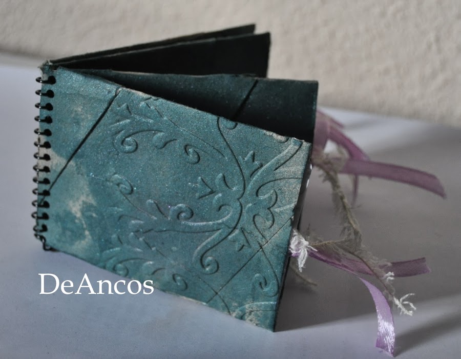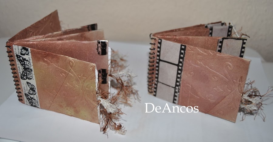 No es gran cosa, es un detalle como decía más arriba. Aquí tenéis las tarjetas y minis álbumes realizados con tubos de cartón tintados con glimmer mist, embosados en sus portadas y contraportadas y con un tag embosado incluido en cada una de las "páginas". Otros están decorados, además con washi tapes.