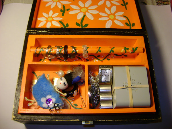 Primero os enseño este precioso joyero que me han hecho mis padres. Es de madera y pintado a mano. Yo estoy super contenta con el!! Os dejo fotitos para que entendais porque estoy tan contenta: