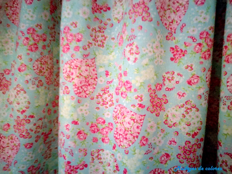 A la peque de la familia, le hice un vestido, añadiendo a una camiseta una falda de tela, de la cual me enamoré en cuanto la vi, en tonos suaves, pero bien alegres. Como la tela tiene unos corazones, se me ocurrió aplicarle uno en la camiseta.