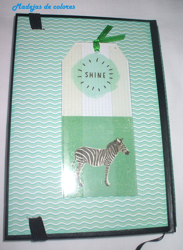 Fíjense en los detalles, como el corazón de madera y flor que lleva alrededor de agenda y encima del elástico que la cierra, otro corazón y más adornos.