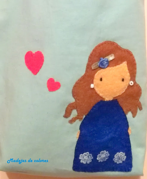 Todo en fieltro, con unas flores en el vestido y pelo, unos corazones que le ponen el toque de color y como remate, unos pendientes, muy coqueta igual que lo es su dueña, jeje.