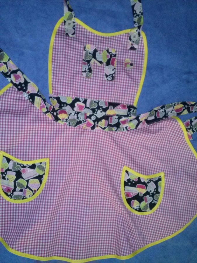 El delantal de estilo de los "50 es de mi sobri. Con cuadros de vichy y estampado de cupcakes. Espero que se acuerde mucho de mí cuando lo use, seguro que sí.