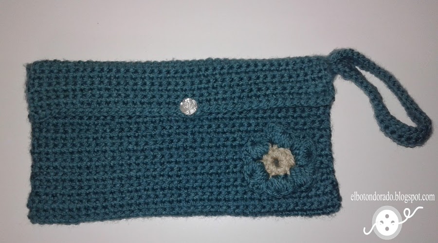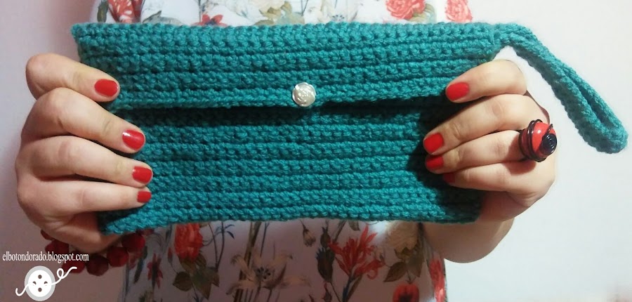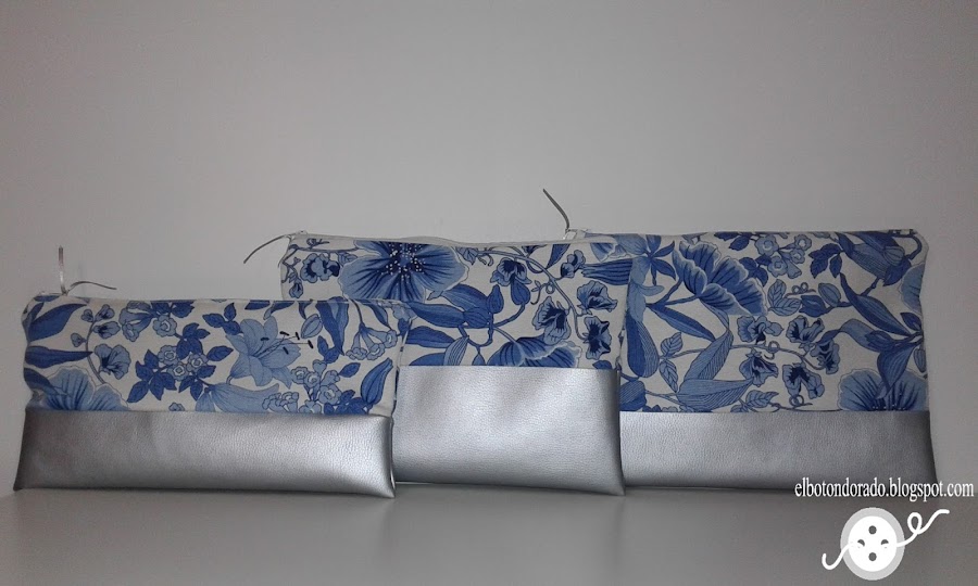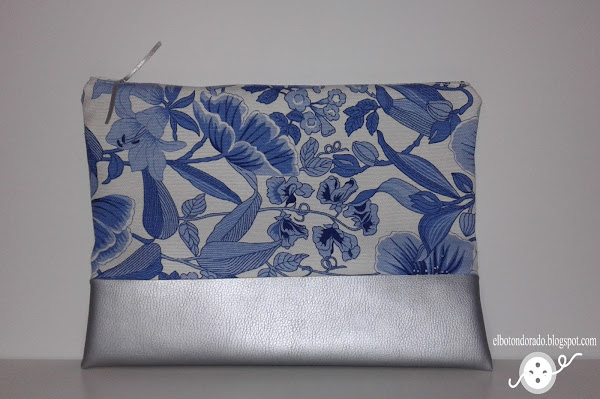 Me vino la inspiración y empecé a hacer este bolso de mano o clutch, combinando polipiel y una loneta muy bonita con estampado en tonos azules.