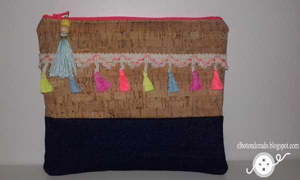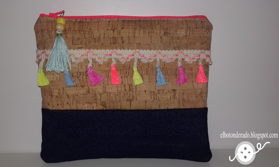 Como a mí me gusta mucho el estilo étnico, me dejé llevar por la inspiración para hacer el siguiente bolso. Esta vez combiné tela de corcho y tela vaquera.