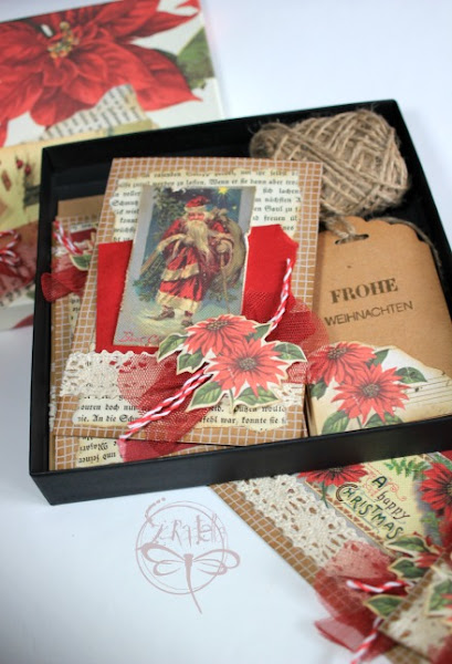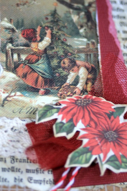 Todo muy tradicional acentué además ésto con los colores, el encaje, el tul, el papel de libro viejo, las estampas...